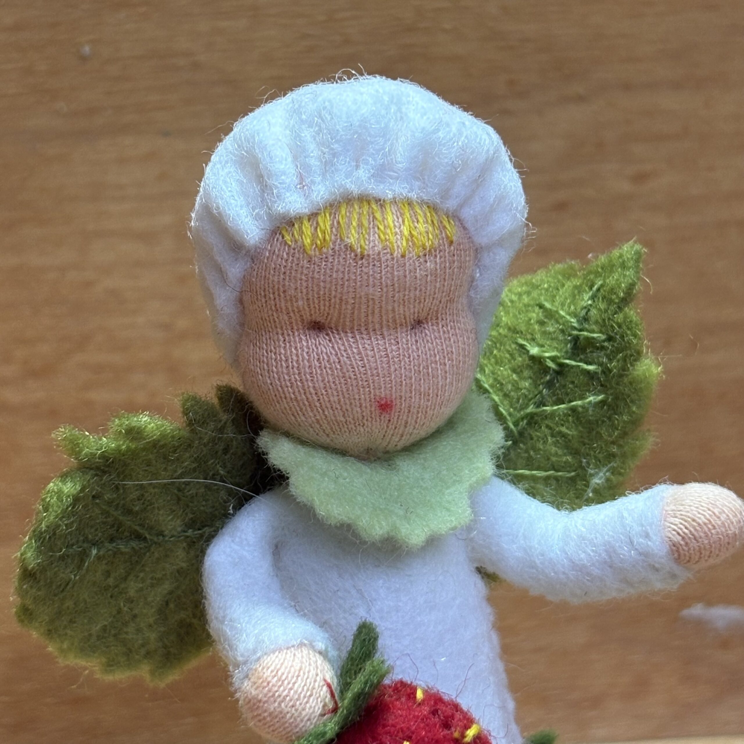 Een lief, handgemaakt popje dat uitnodigt tot kijken en verwonderen.