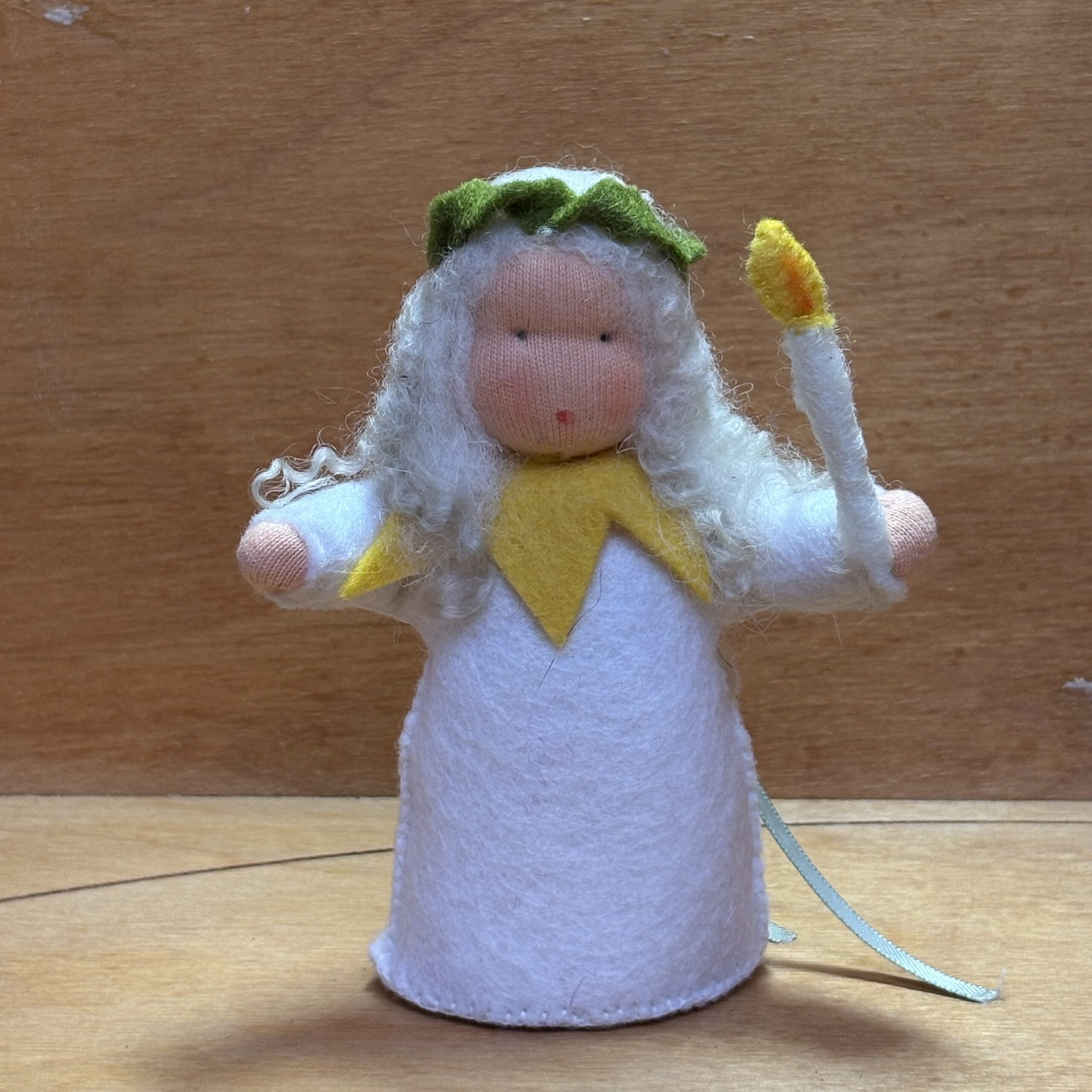 Met haar kaars in de hand is zij een mooi symbool voor licht en hoop in de kersttijd.