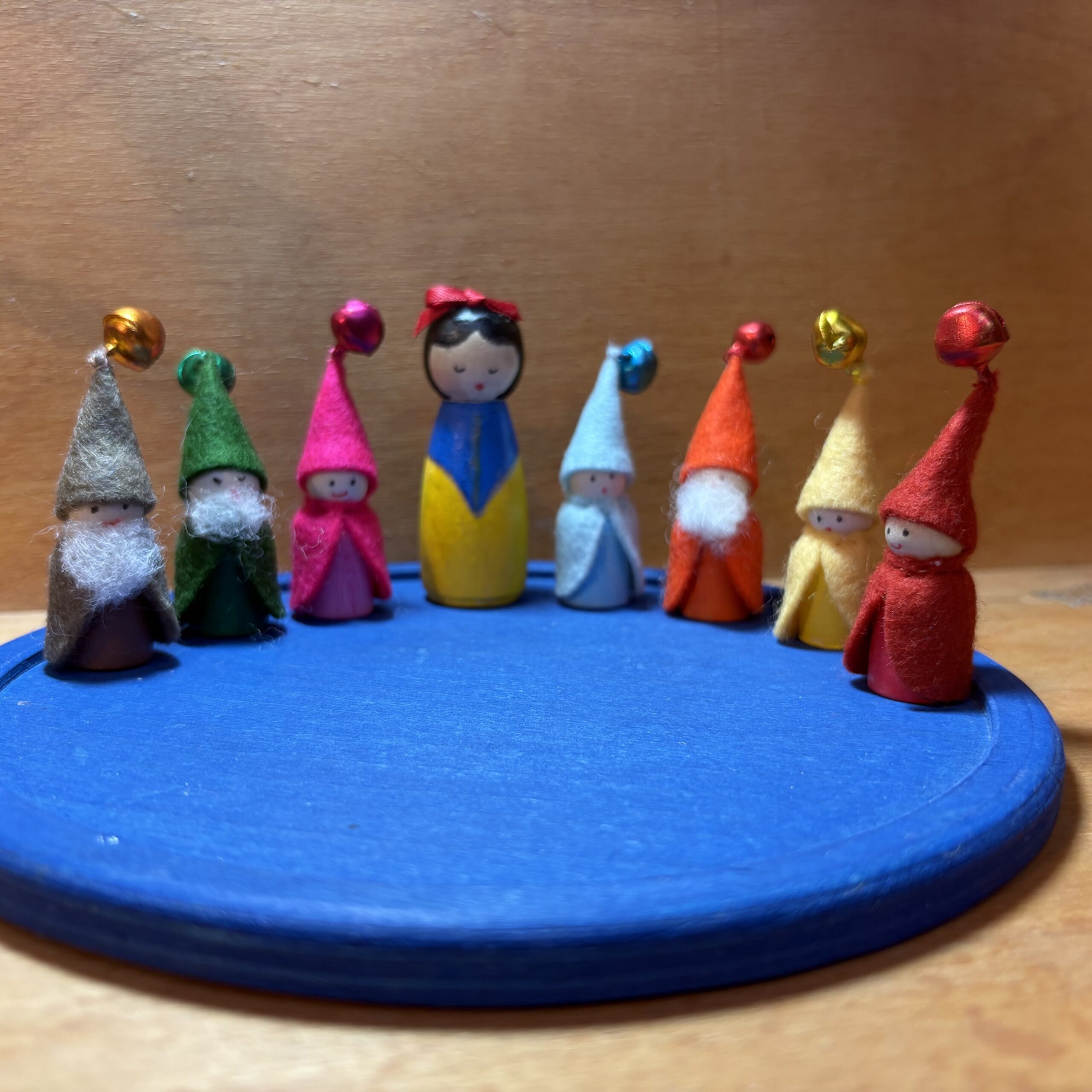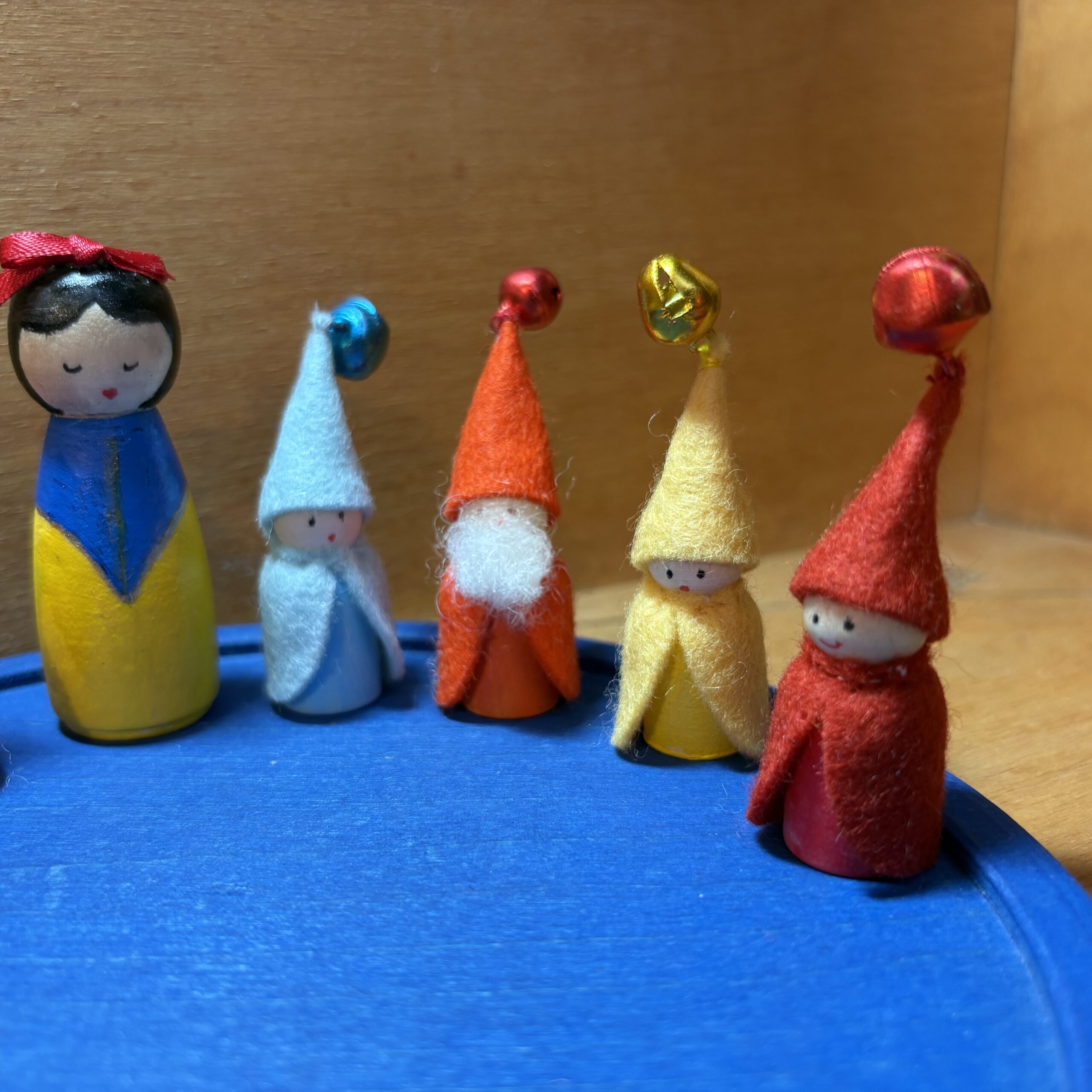 (exclusief verzendkosten)Breng het sprookje van Sneeuwwitje en de 7 Dwergen tot leven met deze lieve kegelpopjes. Perfect om het verhaal te vertellen én om heerlijk mee te spelen.